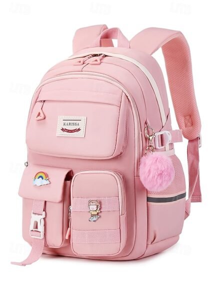 Girls' Pink and White School Backpack with Cute Cartoon