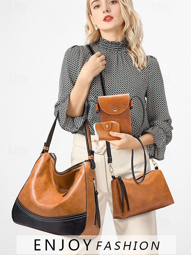 Gender: Women’s, Type: Coin Purse, Crossbody Bag, Shoulder Bags, Material: PU Leather, Quantity: 4 Pieces, Embellishment: Zipper, Tassel, Pattern: Patchwork, Solid Color, Detachable strap: Non-Detachable, Adjustable strap: Adjustable, Occasion: Office, Casual Daily, Width (cm): 13, Height (cm): 32, Length (cm): 33, Function: Large Capacity, Multi Carry, Category: Bag Set,
