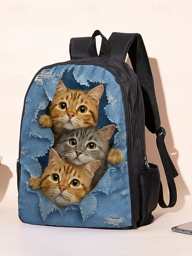 Gender: Boys’, Girls’, Kid’s, Type: 3D Print, Material: Polyester, Embellishment: Zipper, Print, Pattern: Cat, Occasion: Outdoor, Daily, School, Width (cm): 30, Height (cm): 40, Length (cm): 30, Function: Lightweight, Breathable, Large Capacity, Category: Backpack,