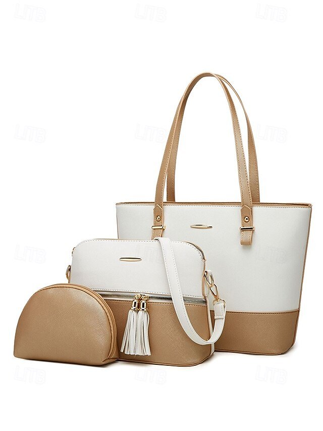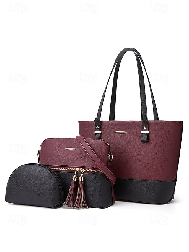 Gender: Women’s, Type: Coin Purse, Crossbody Bag, Shoulder Bags, Material: PU Leather, Quantity: 3 Pieces, Embellishment: Zipper, Tassel, Pattern: Patchwork, Solid Color, Detachable strap: Detachable, Adjustable strap: Adjustable, Occasion: Office, Casual Daily, Width (cm): 13, Height (cm): 27, Length (cm): 31, Function: Large Capacity, Multi Carry, Category: Bag Set,