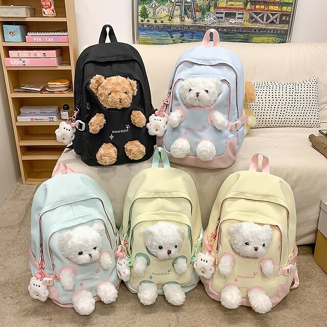 Teen Large Capacity Waterproof Backpack with Cute Toast Pendant