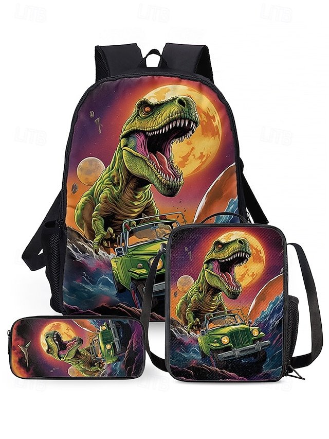 Kids’ 3-Piece Dinosaur Backpack Set with Lunch Bag and