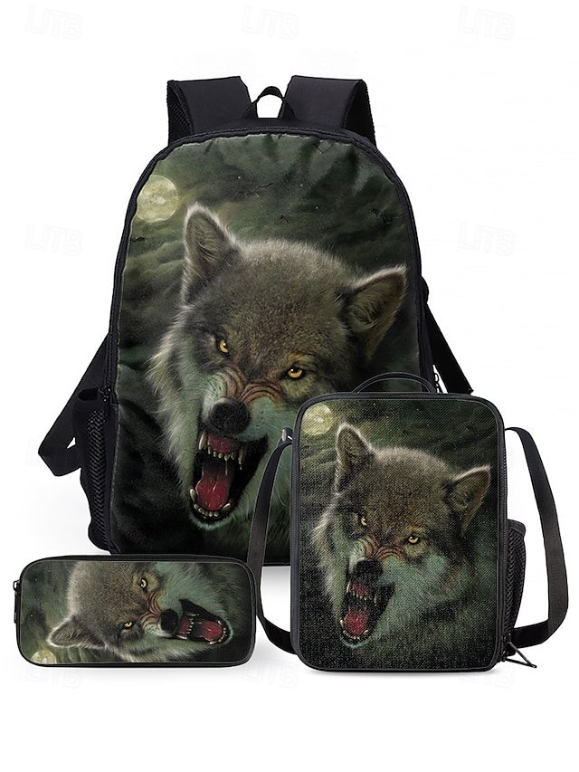 Men’s 3-Piece Wolf Design Backpack Set – Durable, Trendy