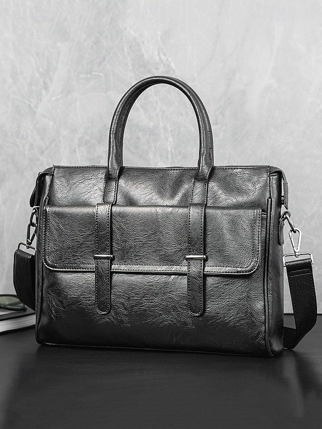 Gender: Men’s, Type: Satchel, Laptop Bag, Crossbody Bag, Material: PU Leather, Embellishment: Zipper, Pattern: Solid Color, Detachable strap: Detachable, Adjustable strap: Adjustable, Occasion: Office, Daily, Width (cm): 9, Height (cm): 30, Length (cm): 37, Function: Waterproof, Large Capacity, Category: Briefcase,