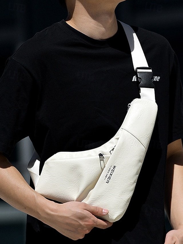 Gender: Men’s, Type: Chest Bag, Crossbody Bag, Material: PU Leather, Embellishment: Zipper, Multiple pockets, Pattern: Solid Color, Detachable strap: Non-Detachable, Adjustable strap: Adjustable, Occasion: Outdoor, Casual Daily, Casual, Width (cm): 23, Height (cm): 33, Length (cm): 1, Function: Waterproof, Lightweight, Durable, Category: Shoulder Bag,