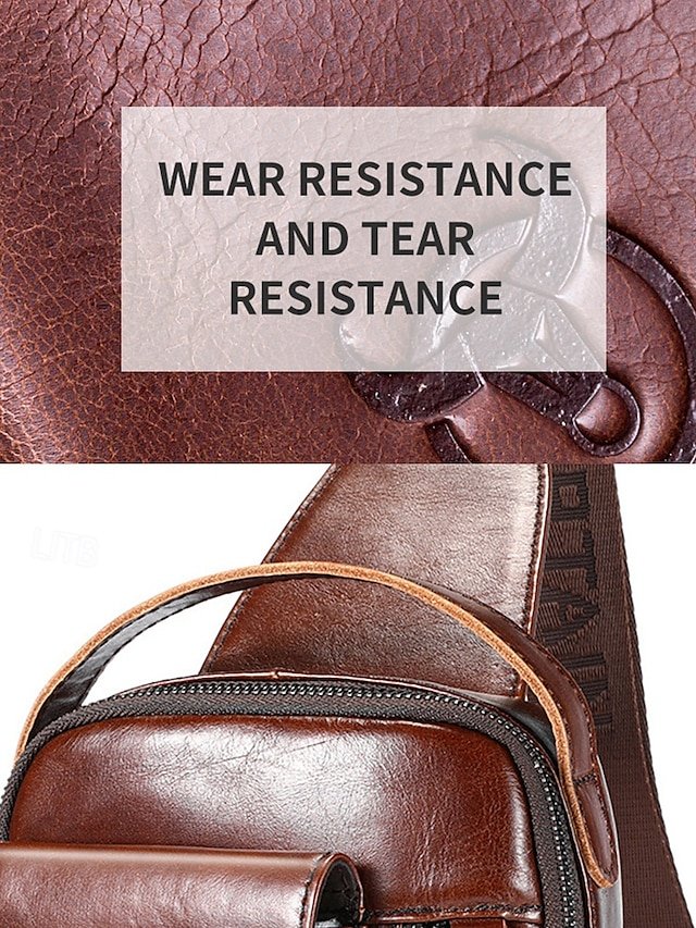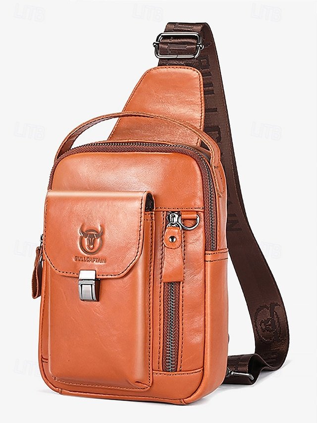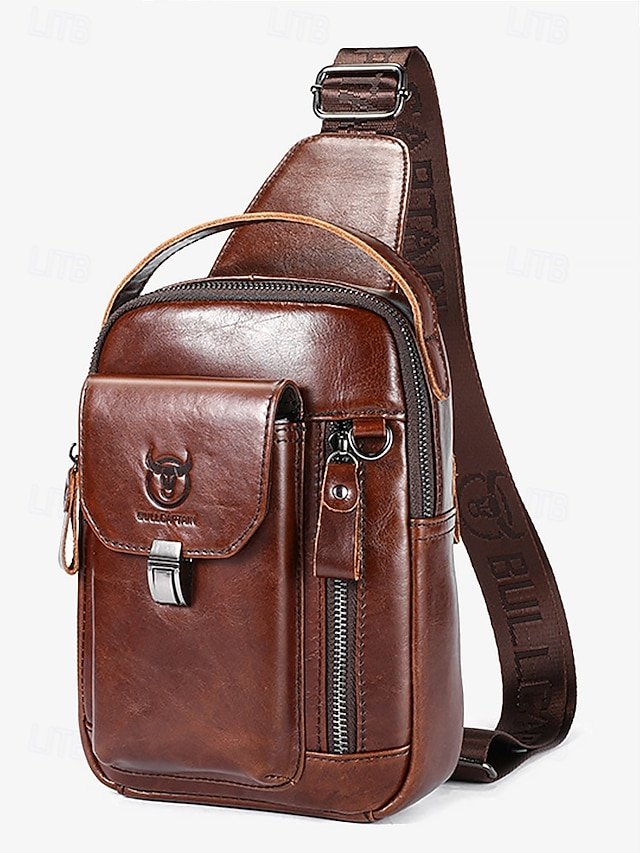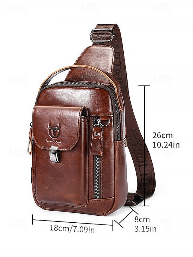 Gender: Men’s, Type: Chest Bag, Shoulder Bags, Material: Leather, Cowhide, Embellishment: Zipper, Multiple pockets, Pattern: Solid Color, Detachable strap: Non-Detachable, Adjustable strap: Adjustable, Occasion: Office, Outdoor, Daily, Width (cm): 8, Height (cm): 31, Length (cm): 17, Function: Waterproof, USB Port, Multi Carry, Category: Crossbody Bag,