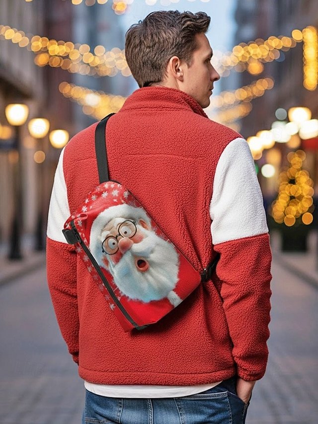 Gender: Men’s, Type: Chest Bag, Crossbody Bag, Material: Polyester, Embellishment: Zipper, Print, Pattern: Gingerbread Man, Santa Claus, Detachable strap: Non-Detachable, Adjustable strap: Adjustable, Occasion: Outdoor, Casual Daily, Christmas, Casual, Width (cm): 15, Height (cm): 32, Length (cm): 16, Function: Lightweight, Large Capacity, Multi Carry, Category: Crossbody Bag,