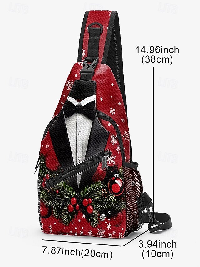 Gender: Men’s, Type: Chest Bag, Crossbody Bag, Material: Polyester, Embellishment: Zipper, Print, Pattern: Snowflakes, Christmas Tree, Detachable strap: Non-Detachable, Adjustable strap: Adjustable, Occasion: Outdoor, Christmas, Casual, Width (cm): 20, Height (cm): 38, Length (cm): 10, Function: Lightweight, Large Capacity, Multi Carry, Category: Crossbody Bag,