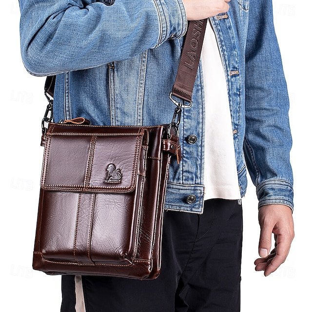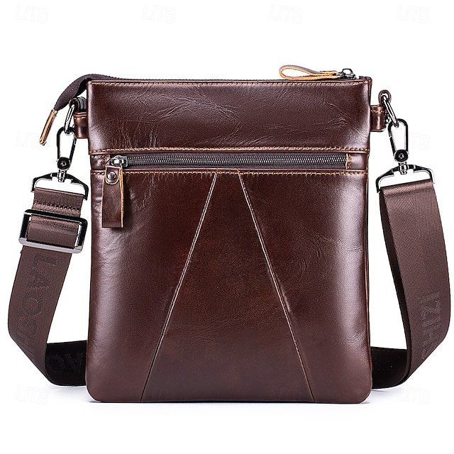 Gender: Men’s, Material: Cowhide, Embellishment: Zipper, Pattern: Solid Color, Occasion: Daily, Width (cm): 6, Height (cm): 27, Length (cm): 22, Category: Crossbody Bag,