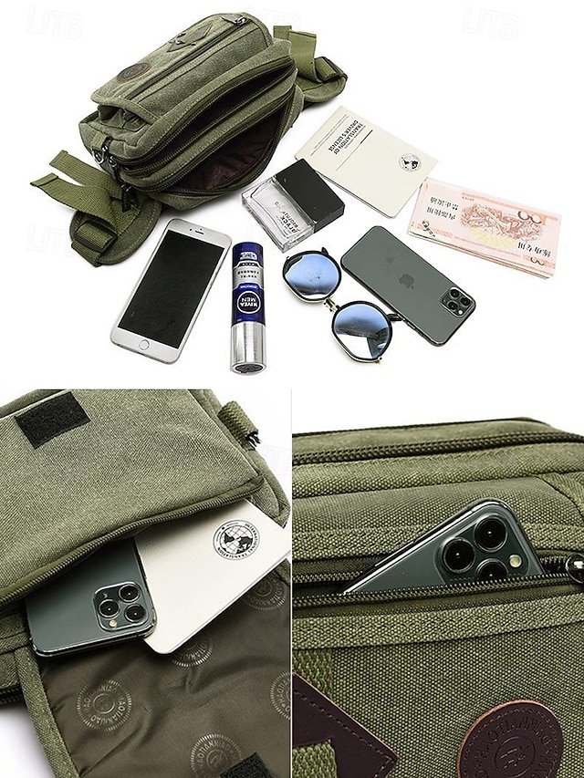 Gender: Men’s, Type: Shoulder Bags, Fanny Pack, Material: Canvas, Embellishment: Zipper, Multiple pockets, Pattern: Solid Color, Occasion: Holiday, Daily, Outdoor, Width (cm): 7, Height (cm): 14, Length (cm): 23, Function: Large Capacity, Multi Carry, Category: Crossbody Bag,