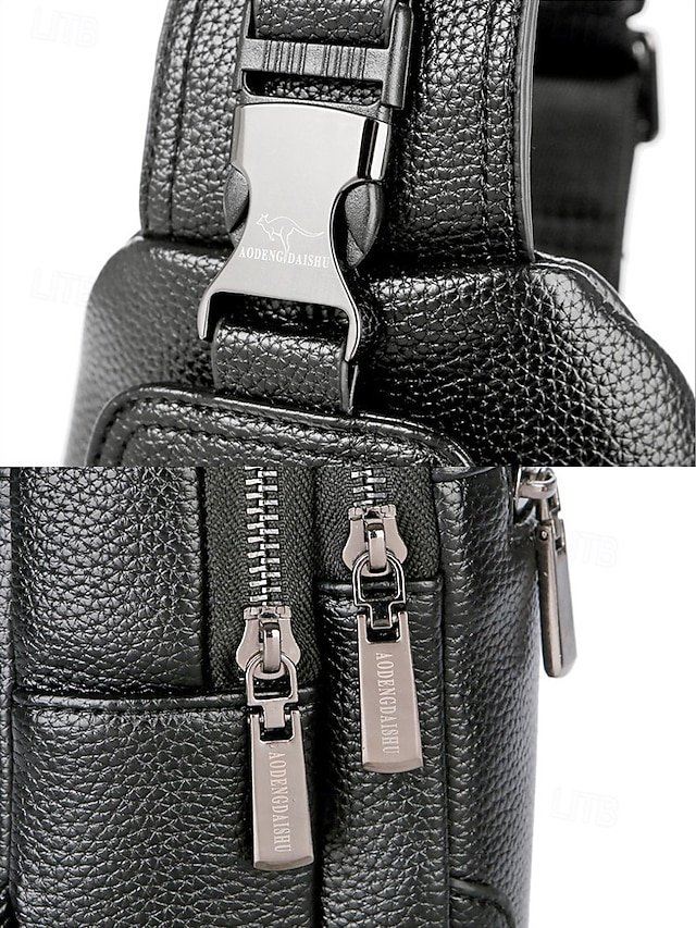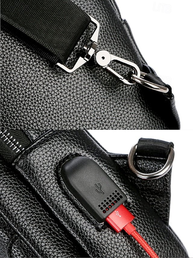 Gender: Men’s, Type: Chest Bag, Material: PU Leather, Embellishment: Zipper, Multiple pockets, Pattern: Solid Color, Detachable strap: Non-Detachable, Adjustable strap: Adjustable, Occasion: Travel, Father’s Day, Office, Casual, Width (cm): 16, Height (cm): 32, Length (cm): 6, Function: Waterproof, Durable, USB Port, Category: Crossbody Bag,