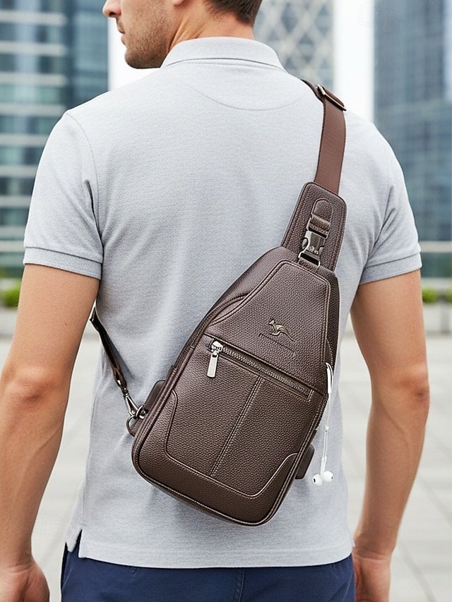 Be the first to review “Men’s Faux Leather Sling Chest Bag with USB Charging Port,” Cancel reply
