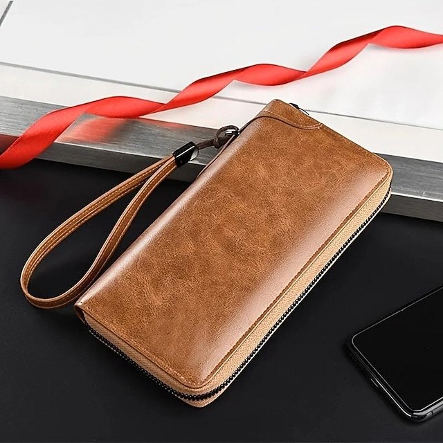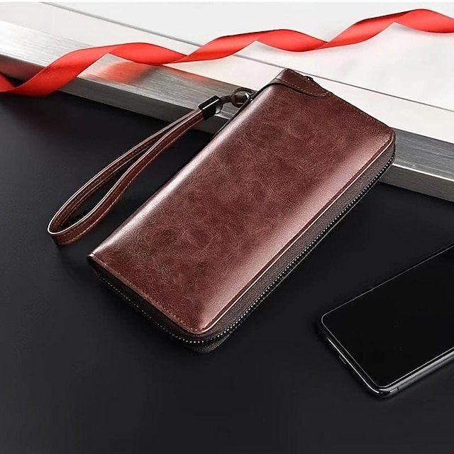 Gender: Men’s, Material: PU Leather, Embellishment: Zipper, Pattern: Solid Color, Occasion: Shopping, Daily, Width (cm): 2.5, Height (cm): 11.5, Length (cm): 21.5, Function: Lightweight, Durable, Category: Wallet,
