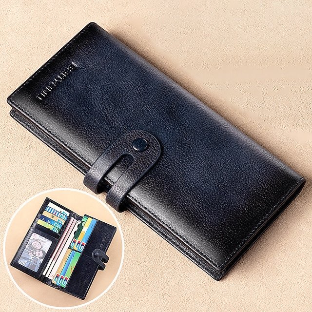 Men’s Genuine Leather Long Wallet – Vintage Bifold Clutch