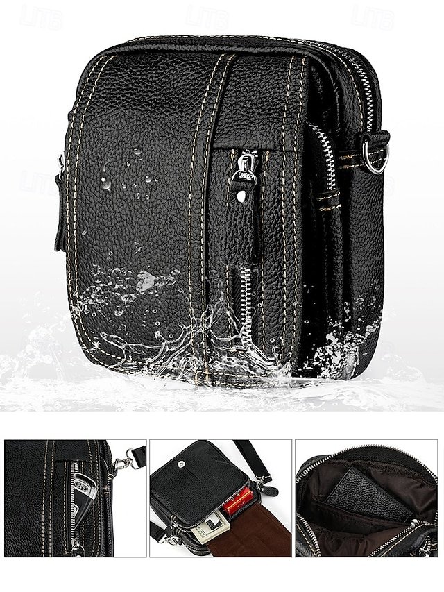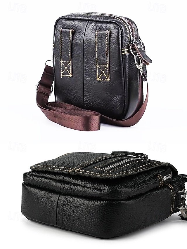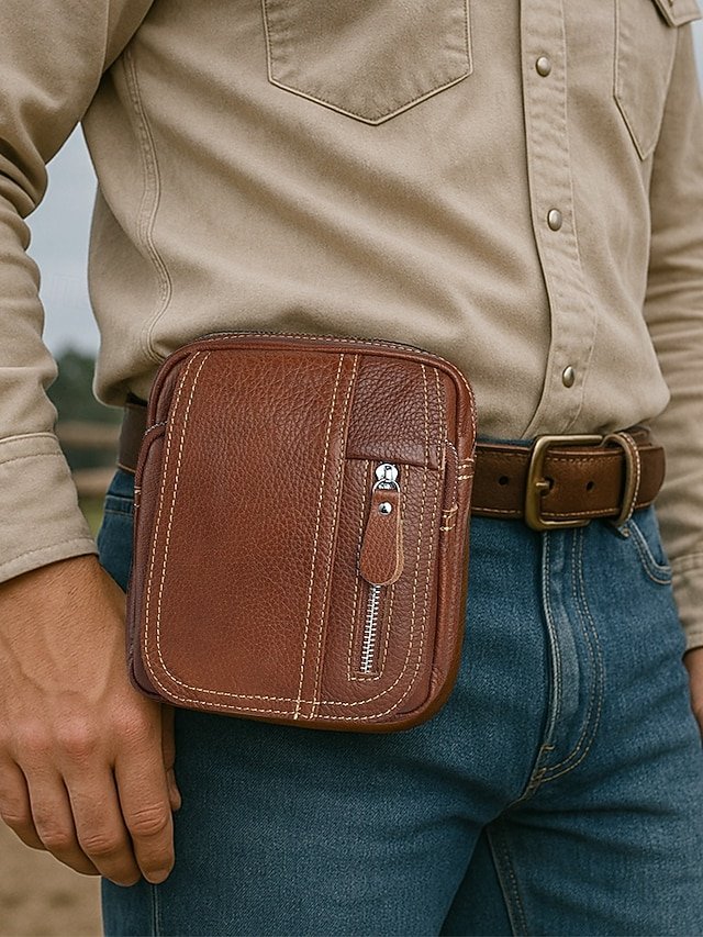 Gender: Men’s, Type: Fanny Pack, Belt Bag, Material: Cowhide, Leather, Embellishment: Zipper, Multiple pockets, Pattern: Solid Color, Detachable strap: Detachable, Adjustable strap: Adjustable, Occasion: Office, Outdoor, Casual, Daily, Width (cm): 7.5, Height (cm): 19, Length (cm): 17.5, Function: Large Capacity, Durable, Multi Carry, Category: Crossbody Bag,