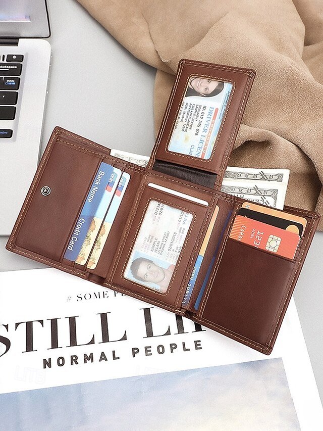 Gender: Men’s, Type: Credit Card Holder Wallet, Material: Leather, Embellishment: Zipper, Multiple pockets, Pattern: Solid Color, Adjustable strap: Non-Adjustable, Occasion: Father’s Day, Office, Casual, Width (cm): 8, Height (cm): 11, Length (cm): 2, Function: Lightweight, Large Capacity, Durable, RFID Blocking, Category: Wallet,
