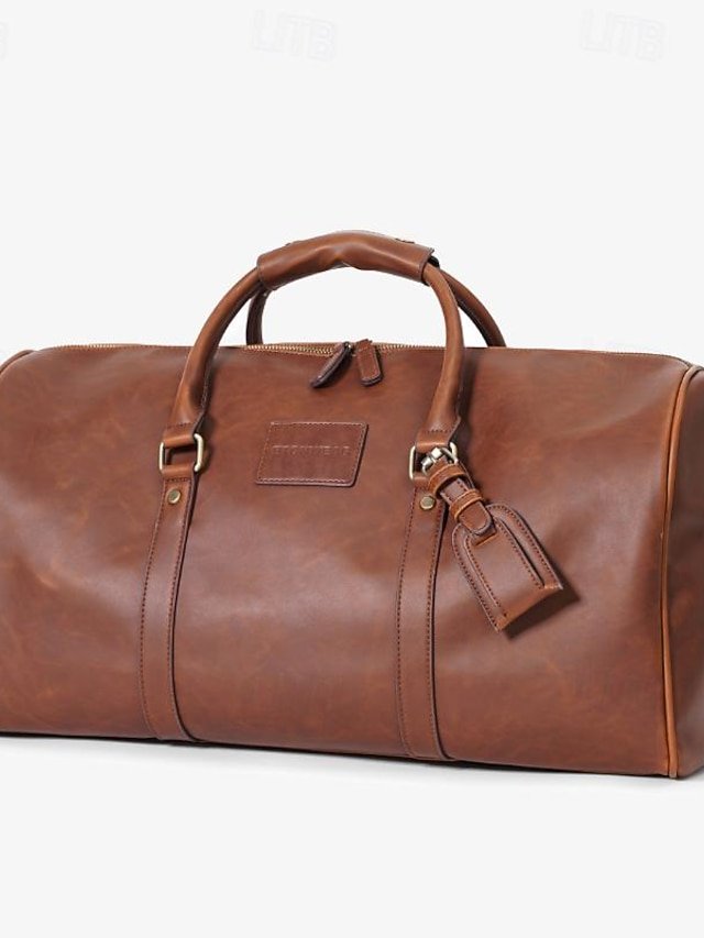 Gender: Men’s, Type: Duffle Bag, Material: PU Leather, Embellishment: Zipper, Pattern: Solid Color, Detachable strap: Detachable, Adjustable strap: Adjustable, Occasion: Travel, Outdoor, Holiday, Width (cm): 27, Height (cm): 29, Length (cm): 50, Function: Waterproof, Large Capacity, Multi Carry, Category: Handbag,