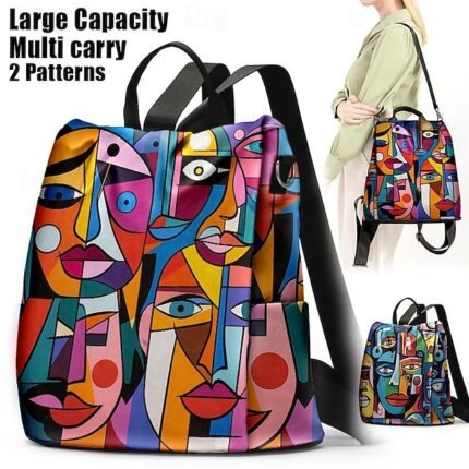 Large Capacity Colorful Abstract Art Print Multi-Carry Backpack