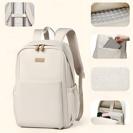 Unisex White Waterproof Laptop Backpack with Padded Compartment,
