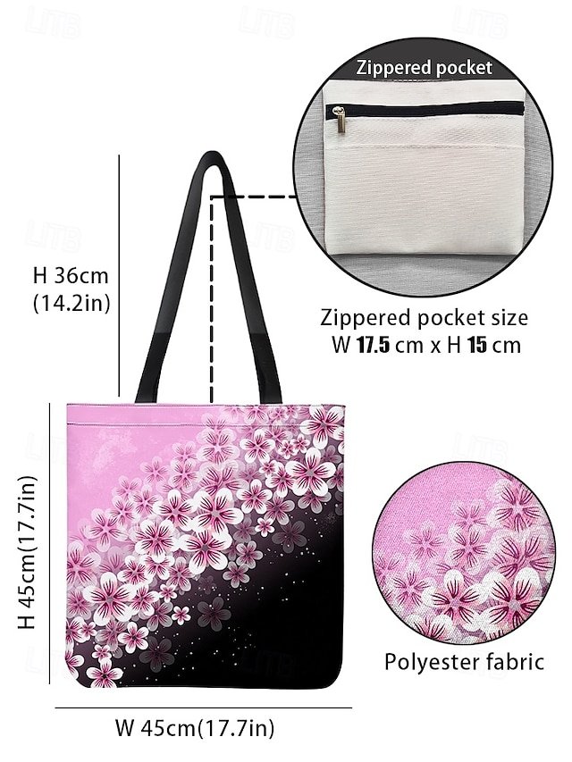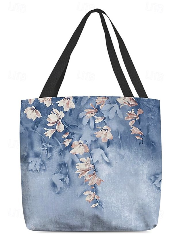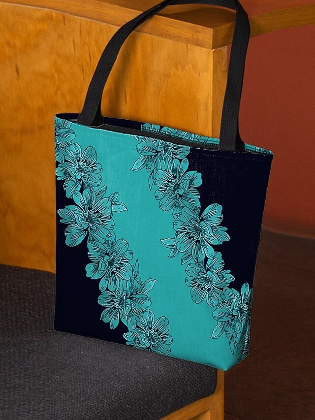 Gender: Women’s, Type: Canvas Tote Bag, Material: Polyester, Embellishment: Print, Pattern: Flower, Detachable strap: Non-Detachable, Adjustable strap: Non-Adjustable, Occasion: Casual Daily, Shopping, Width (cm): 1, Height (cm): 45, Length (cm): 45, Function: Lightweight, Foldable, Large Capacity, Category: Tote,