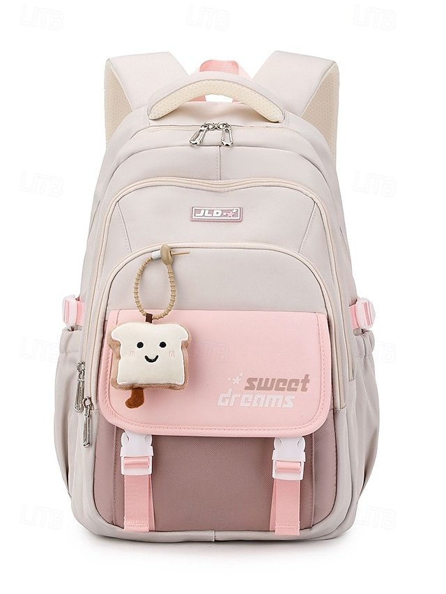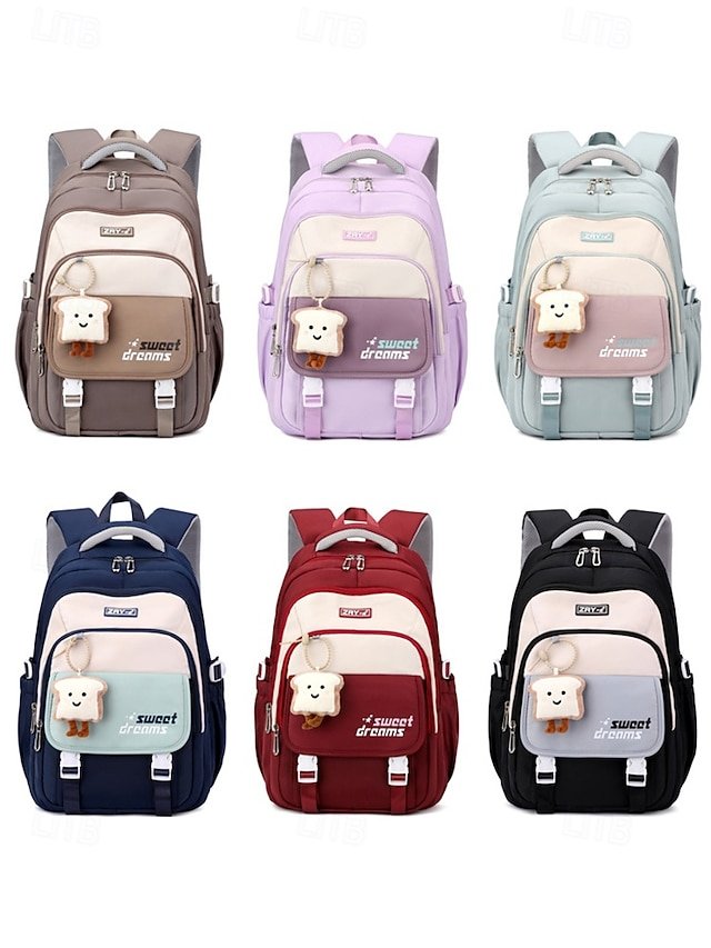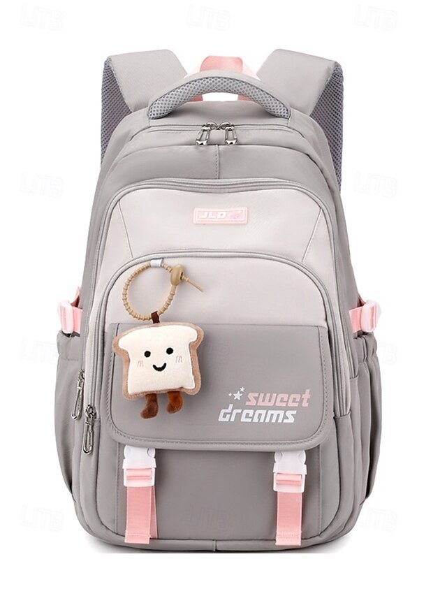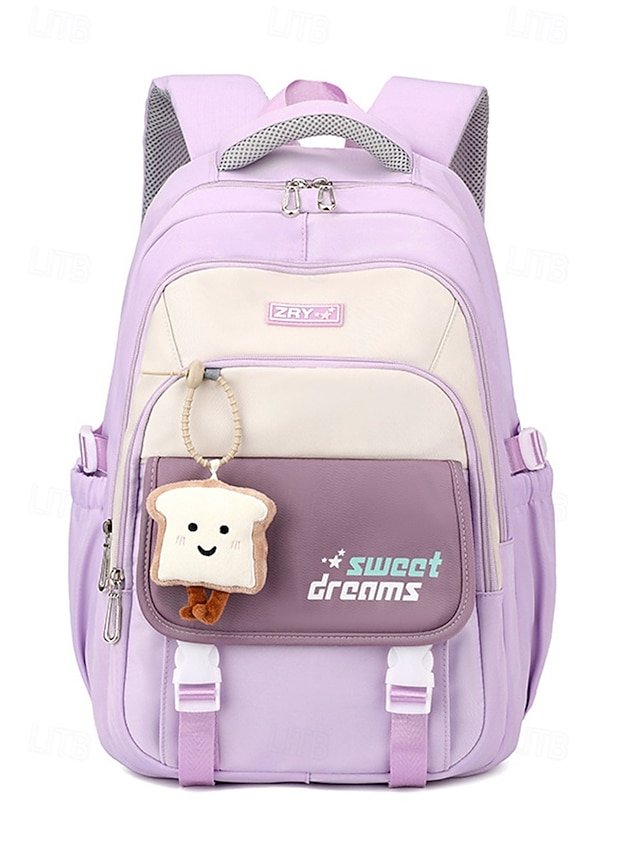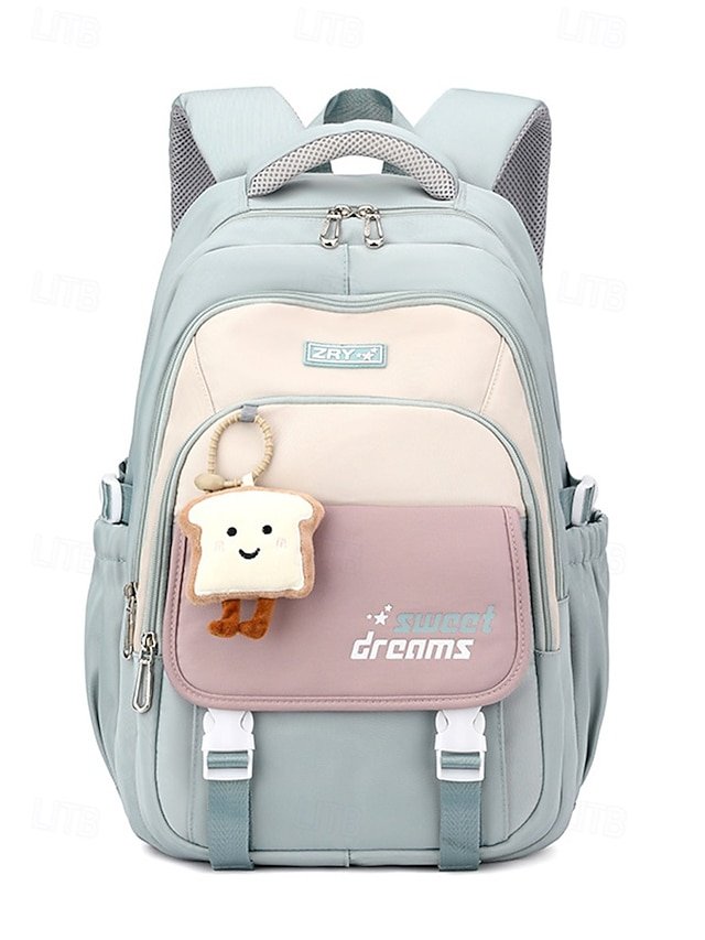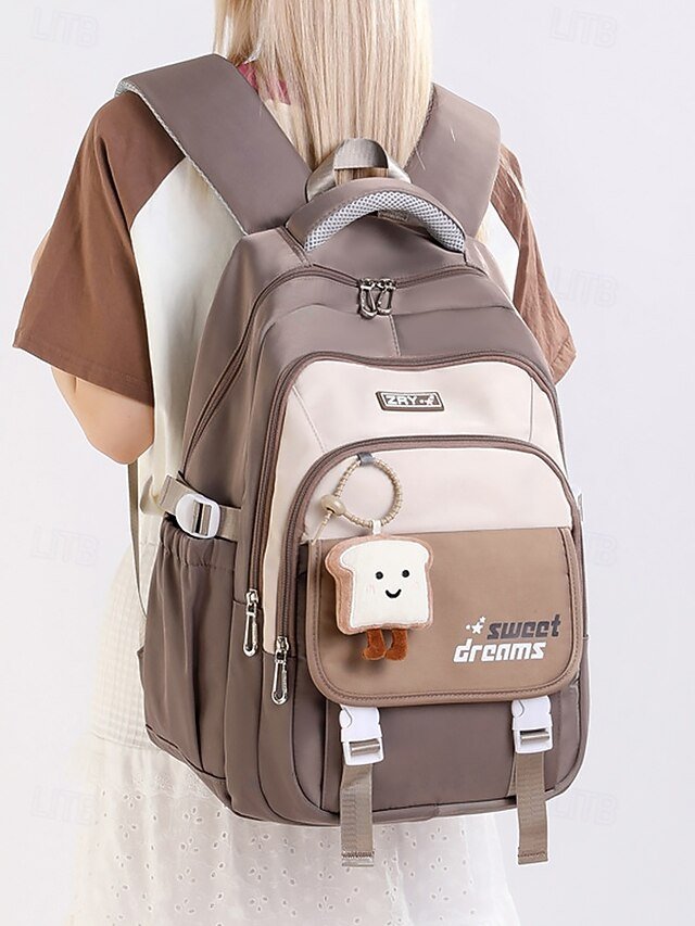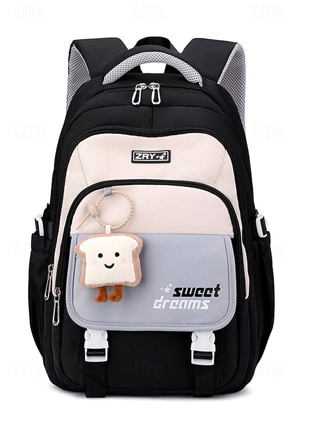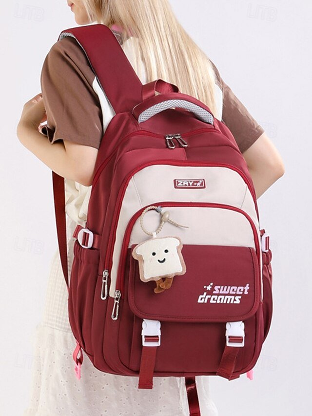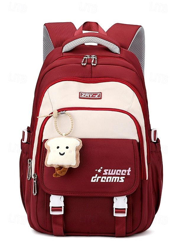 Teen Large Capacity Waterproof Backpack with Cute Toast Pendant