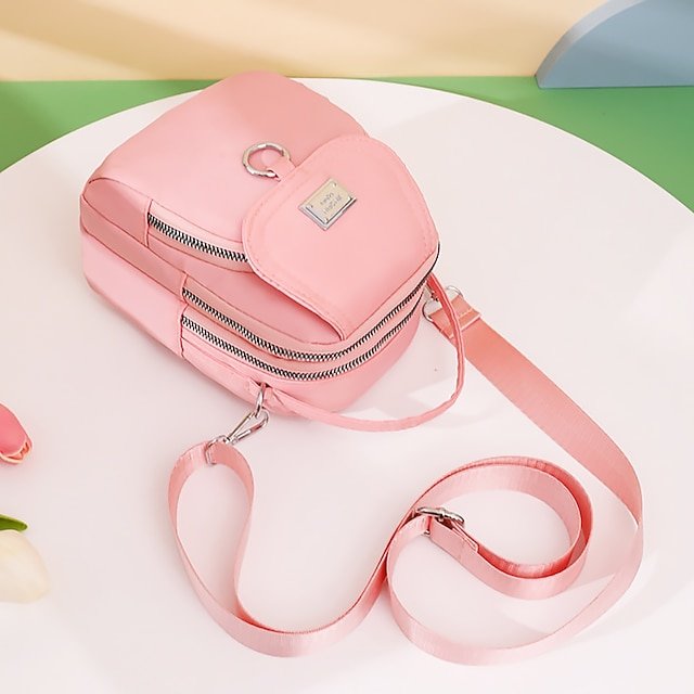 Gender: Women’s, Type: Dome Bag, Material: Nylon, Embellishment: Buckle, Zipper, Pattern: Solid Color, Occasion: Shopping, Daily, Width (cm): 5, Length (cm): 14, Height (cm): 19, Function: Lightweight, Large Capacity, Adjustable, Durable, Category: Handbag, Crossbody Bag,