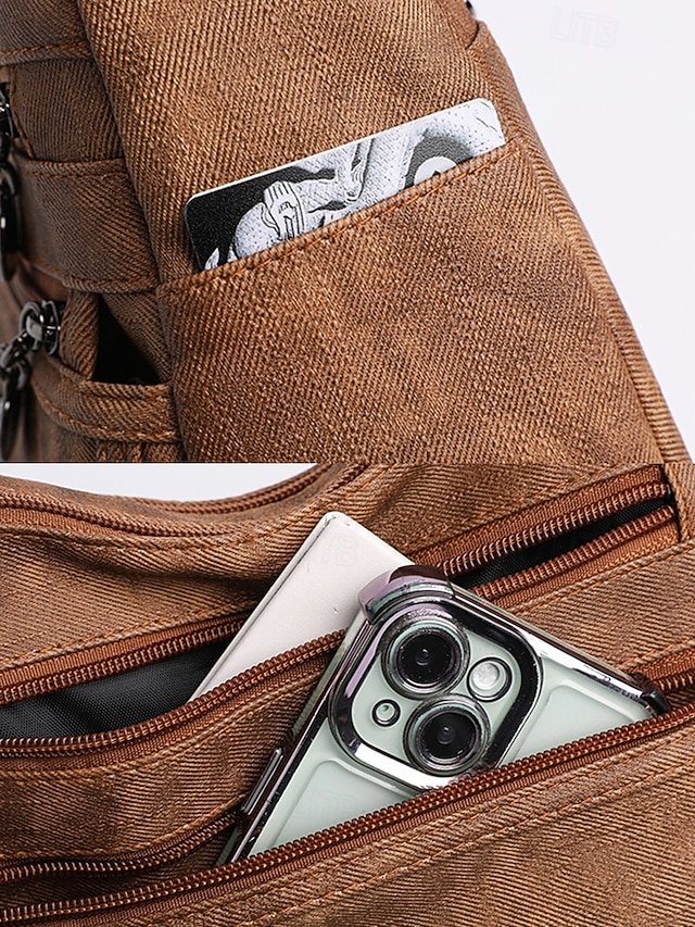 Women’s Brown Faux Leather Crossbody Bag with Multiple
