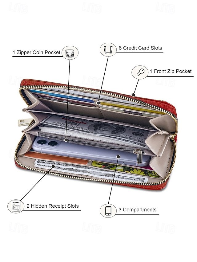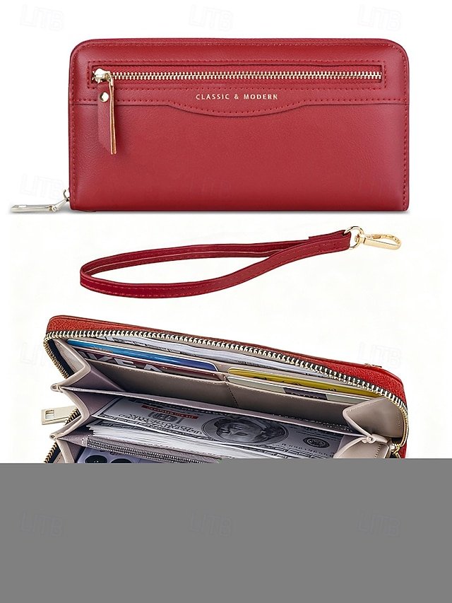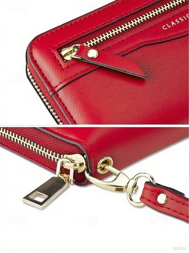 Gender: Women’s, Type: Credit Card Holder Wallet, Material: PU Leather, Embellishment: Zipper, Multiple pockets, Pattern: Solid Color, Adjustable strap: Non-Adjustable, Occasion: Christmas, Office, Mother’s Day, Casual, Shopping, Width (cm): 20, Height (cm): 11, Length (cm): 2.5, Function: Large Capacity, Category: Wallet,