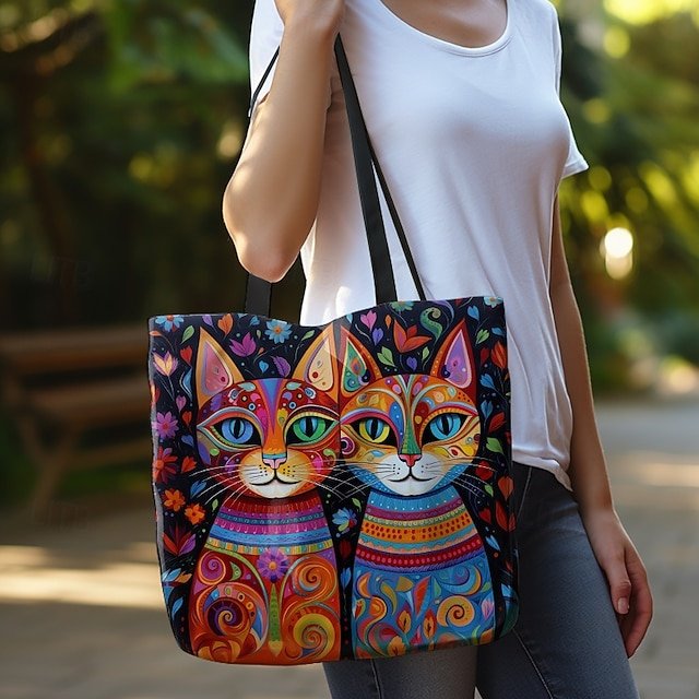 Gender: Women’s, Type: Canvas Tote Bag, Material: Polyester, Embellishment: Print, Pattern: Cat, Detachable strap: Non-Detachable, Adjustable strap: Non-Adjustable, Occasion: Casual Daily, Shopping, Width (cm): 1, Height (cm): 45, Length (cm): 45, Function: Lightweight, Foldable, Large Capacity, Category: Tote,