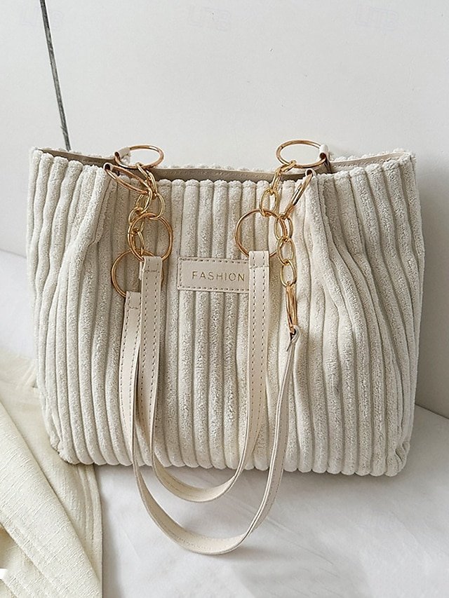 Gender: Women’s, Type: Hobo Bag, Shoulder Bags, Material: Corduroy, Embellishment: Buttons, Pattern: Solid Color, Detachable strap: Non-Detachable, Adjustable strap: Adjustable, Occasion: Mother’s Day, Casual Daily, Casual, Shopping, Width (cm): 29, Height (cm): 25.5, Length (cm): 10, Function: Lightweight, Large Capacity, Category: Tote,
