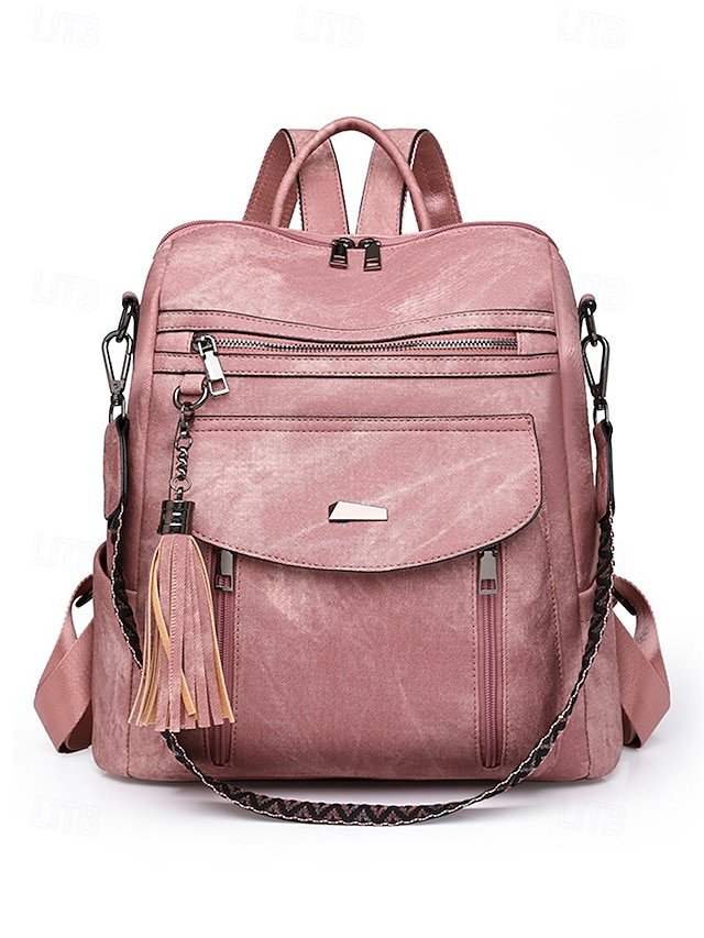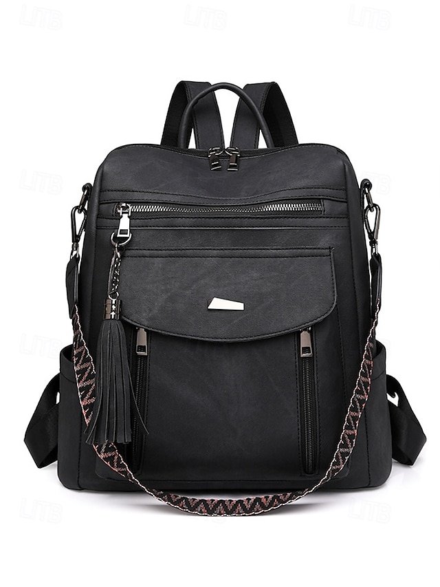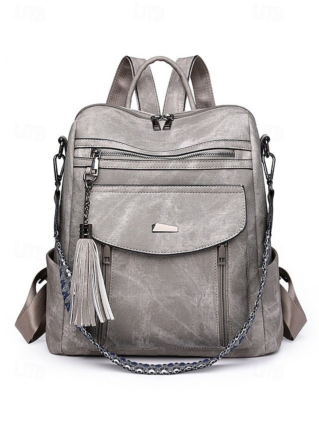 Gender: Women’s, Type: School Bag Bookbag, Functional Backpack, Laptop Backpacks, School Backpack Bookbag, Material: PU Leather, Embellishment: Zipper, Pattern: Solid Color, Occasion: School, Daily, Width (cm): 33, Height (cm): 33, Length (cm): 15, Function: Waterproof, Large Capacity, Multi Carry, Category: Backpack,