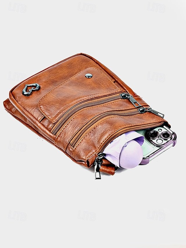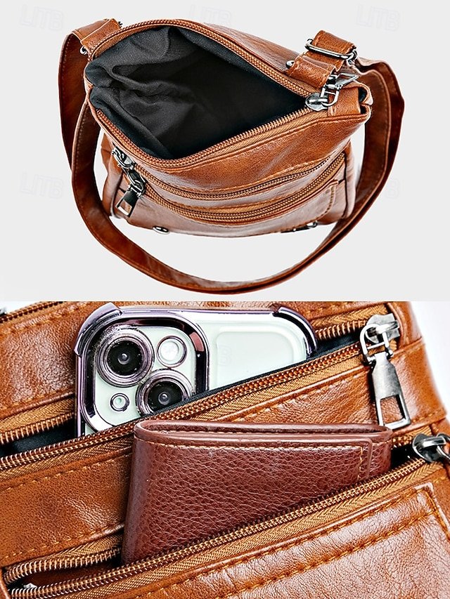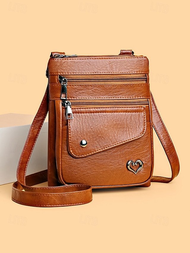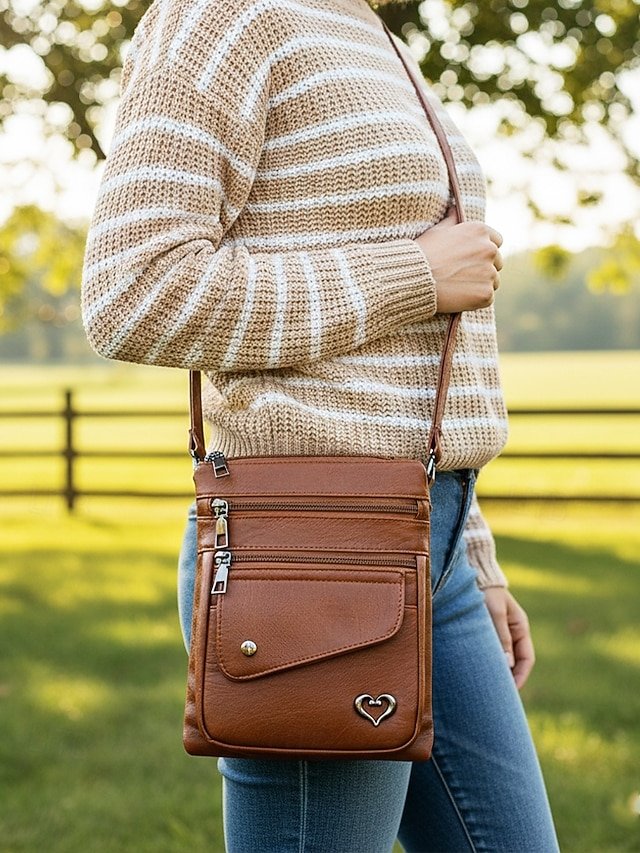 Women’s Faux Leather Crossbody Bag with Multiple Zipper