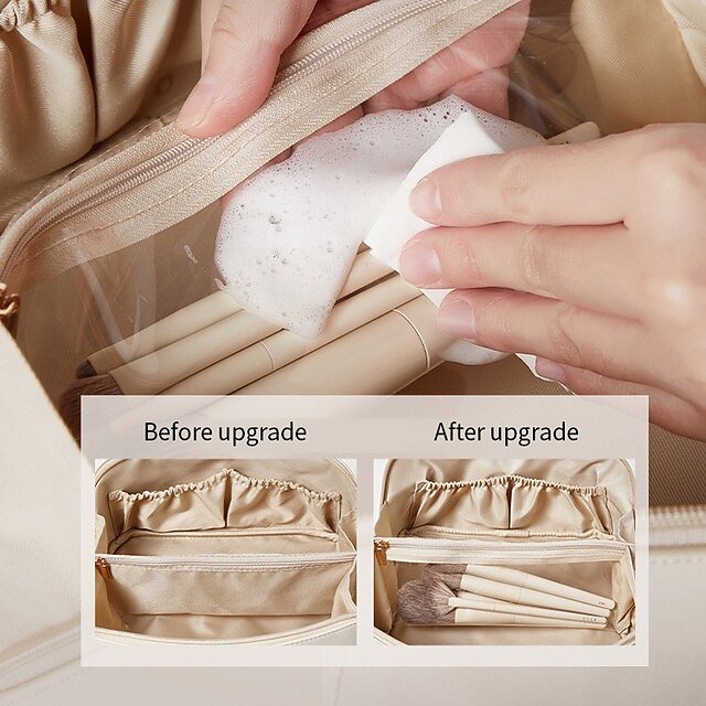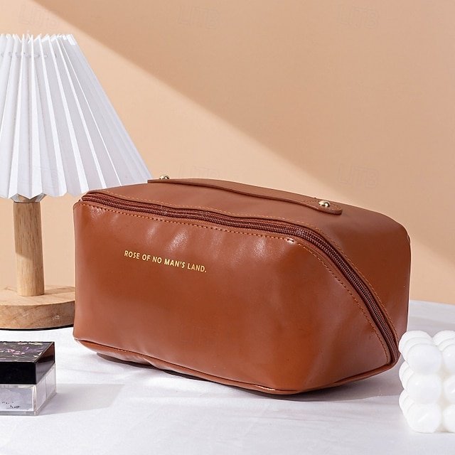Gender: Women’s, Type: Cosmetic Bag, Material: PU Leather, Pattern: Solid Color, Occasion: Travel, Width (cm): 13, Height (cm): 13, Length (cm): 24, Function: Large Capacity, Durable, Category: Handbag, Makeup Bag,