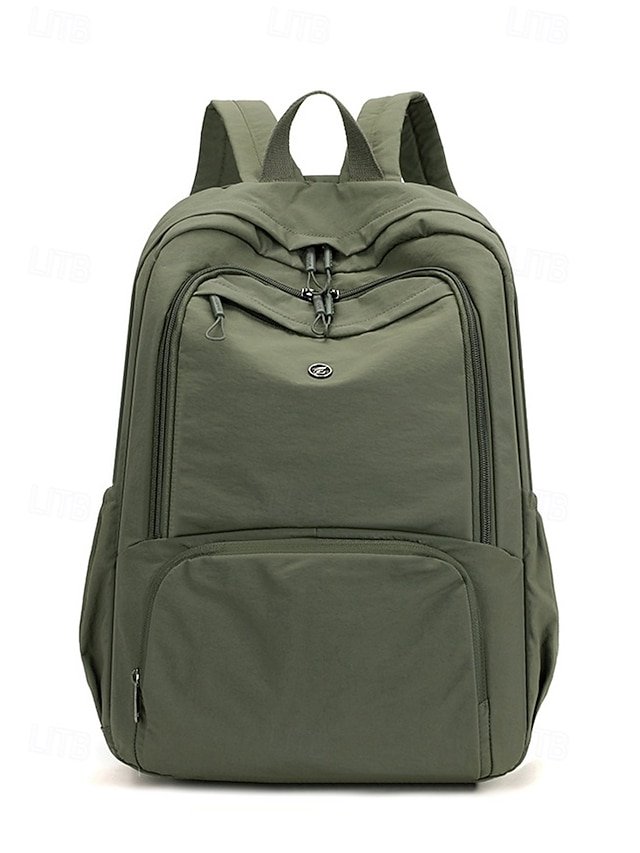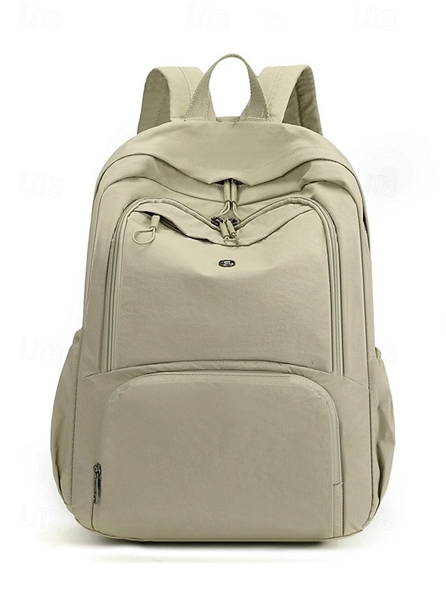 Women's Khaki Waterproof Nylon Backpack with Multi Zipper