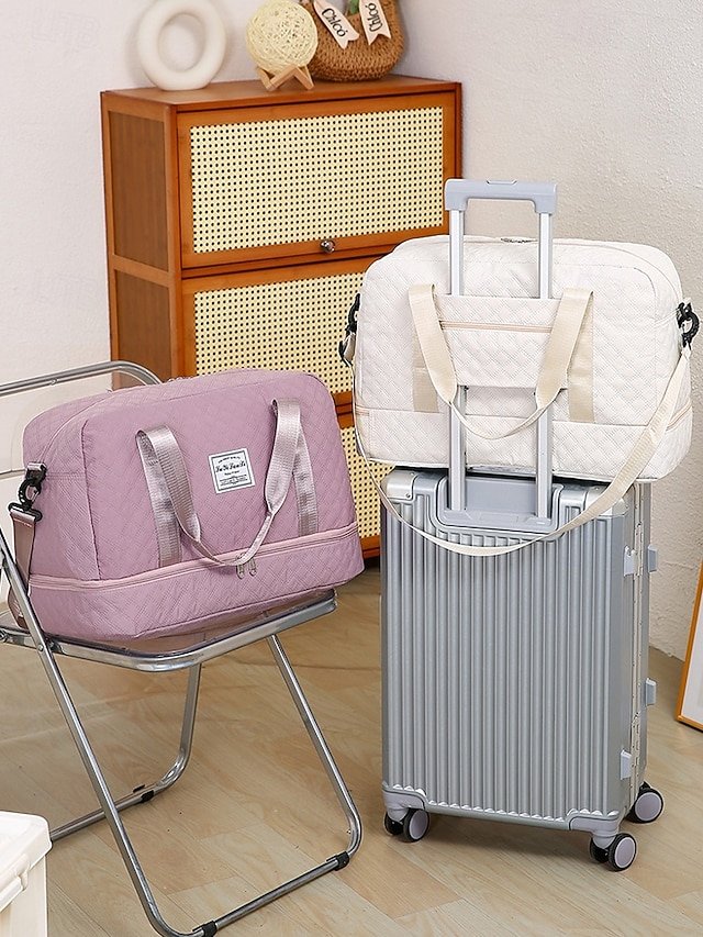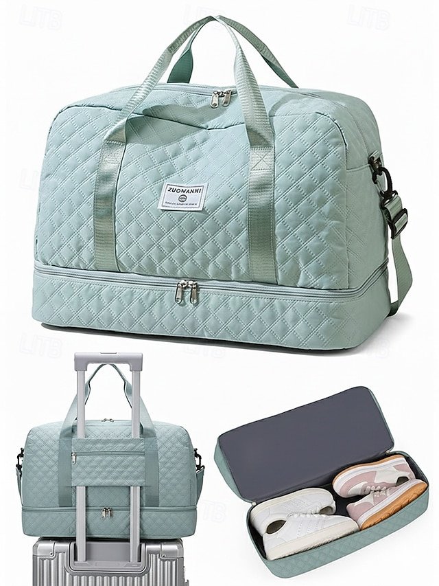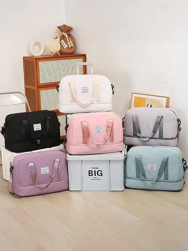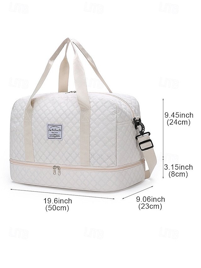 Gender: Women’s, Type: Crossbody Bag, Duffle Bag, Shoulder Bags, Material: Nylon, Embellishment: Zipper, Multiple pockets, Pattern: Quilted, Solid Color, Detachable strap: Detachable, Adjustable strap: Adjustable, Occasion: Travel, Outdoor, Casual, Holiday, Width (cm): 50, Height (cm): 32, Length (cm): 23, Function: Large Capacity, Expandable, Wet and Dry Separation, Multi Carry, Category: Travel Bag,