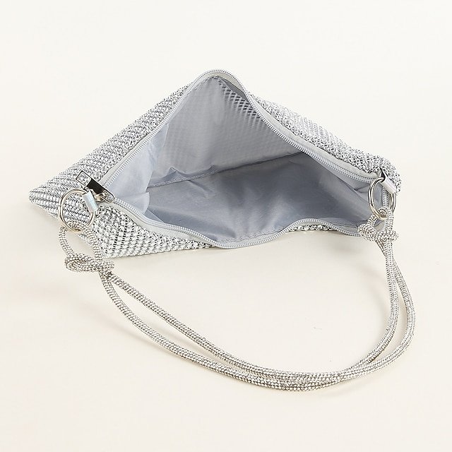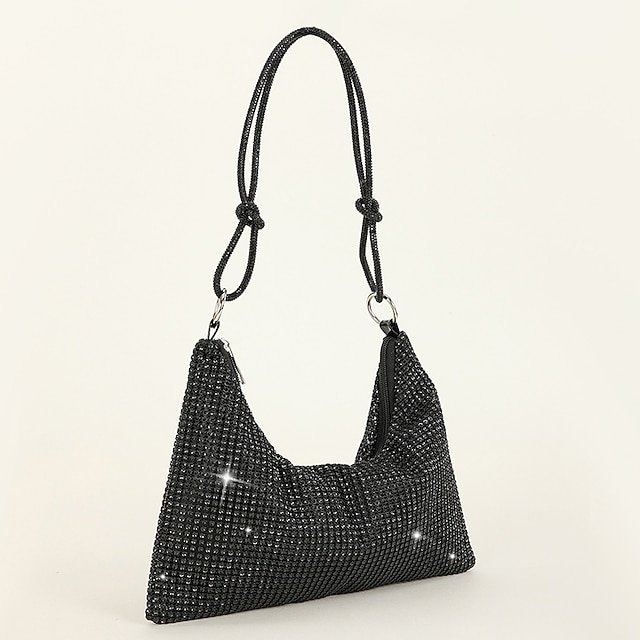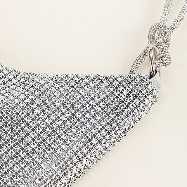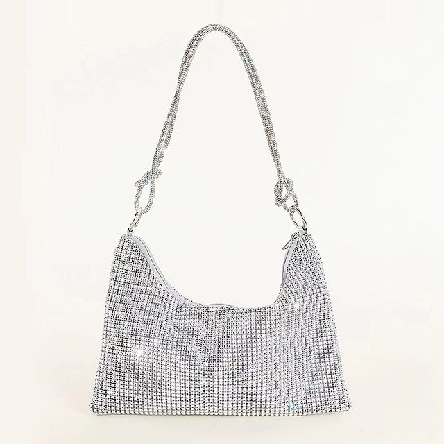 Women’s Silver Rhinestone Shoulder Bag – Sparkly Hobo