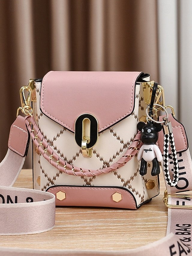 Gender: Women’s, Type: Mobile Phone Bag, Crossbody Bag, Shoulder Bags, Material: PU Leather, Embellishment: Chain, Pendant, Wide shoulder straps, Pattern: Quilted, Patchwork, Detachable strap: Detachable, Adjustable strap: Adjustable, Occasion: Office, Casual Daily, Width (cm): 17, Height (cm): 10, Length (cm): 17, Function: Large Capacity, Multi Carry, Category: Crossbody Bag,