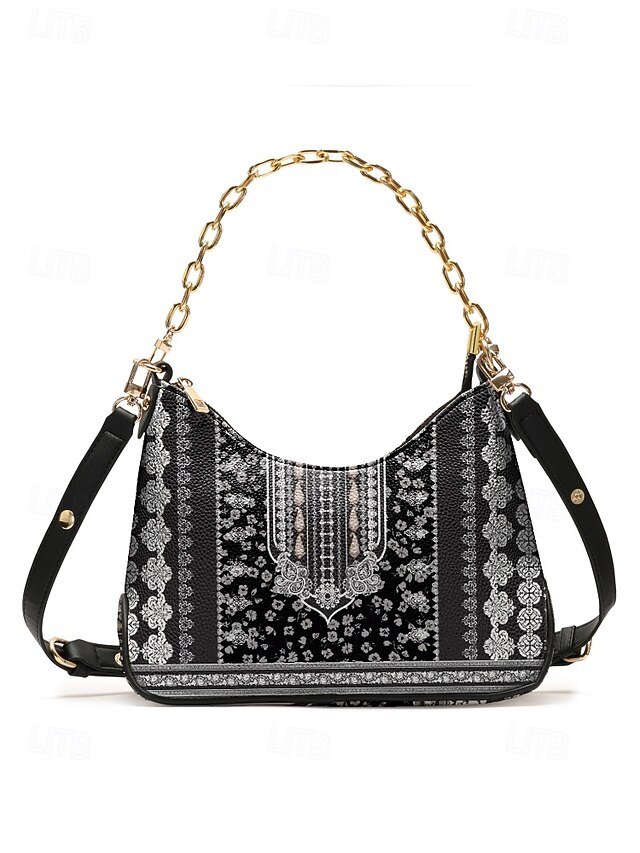 Gender: Women’s, Type: Crossbody Bag, Baguette Bag, Shoulder Bags, Material: PU Leather, Embellishment: Zipper, Chain, Print, Pattern: National Totem, Detachable strap: Detachable, Adjustable strap: Adjustable, Occasion: Office, Casual Daily, Width (cm): 9, Height (cm): 21, Length (cm): 30, Function: Waterproof, Multi Carry, Category: Handbag,